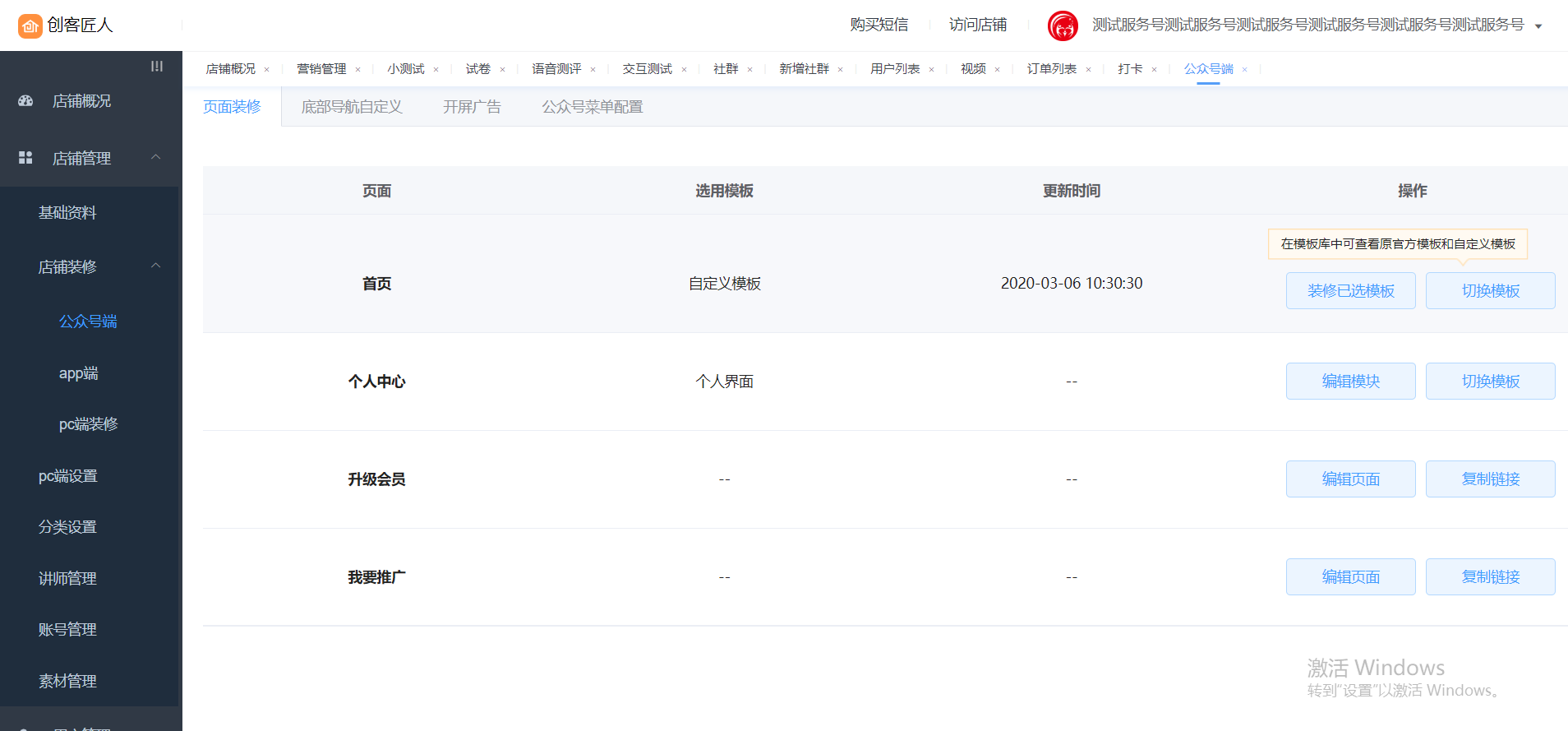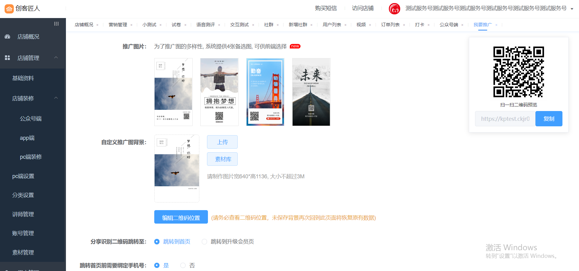1、操作路径:登入客户后台-店铺管理--店铺装修--公众号端---页面装修---我的推广