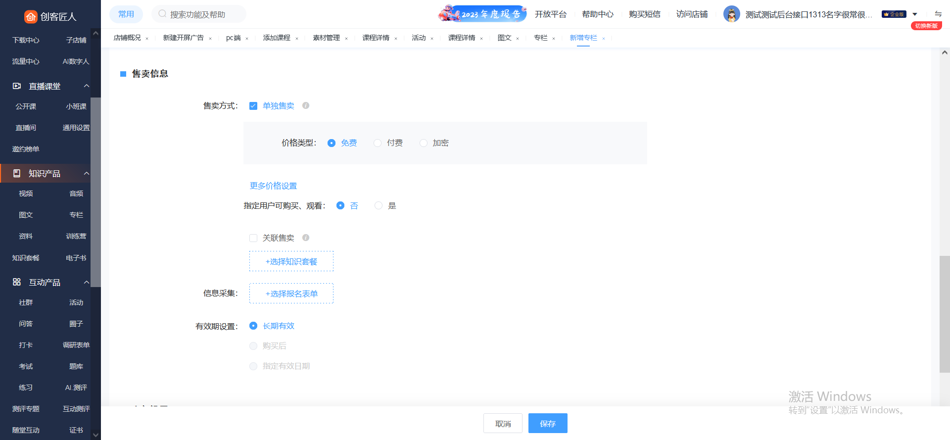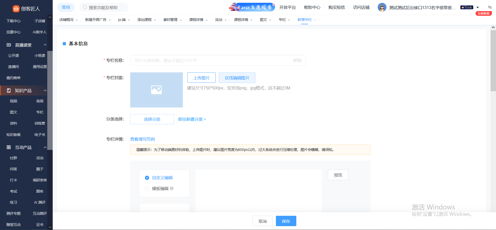 填写专栏名称、专栏图片、详情、价格等信息,保存即可成功创建专栏。