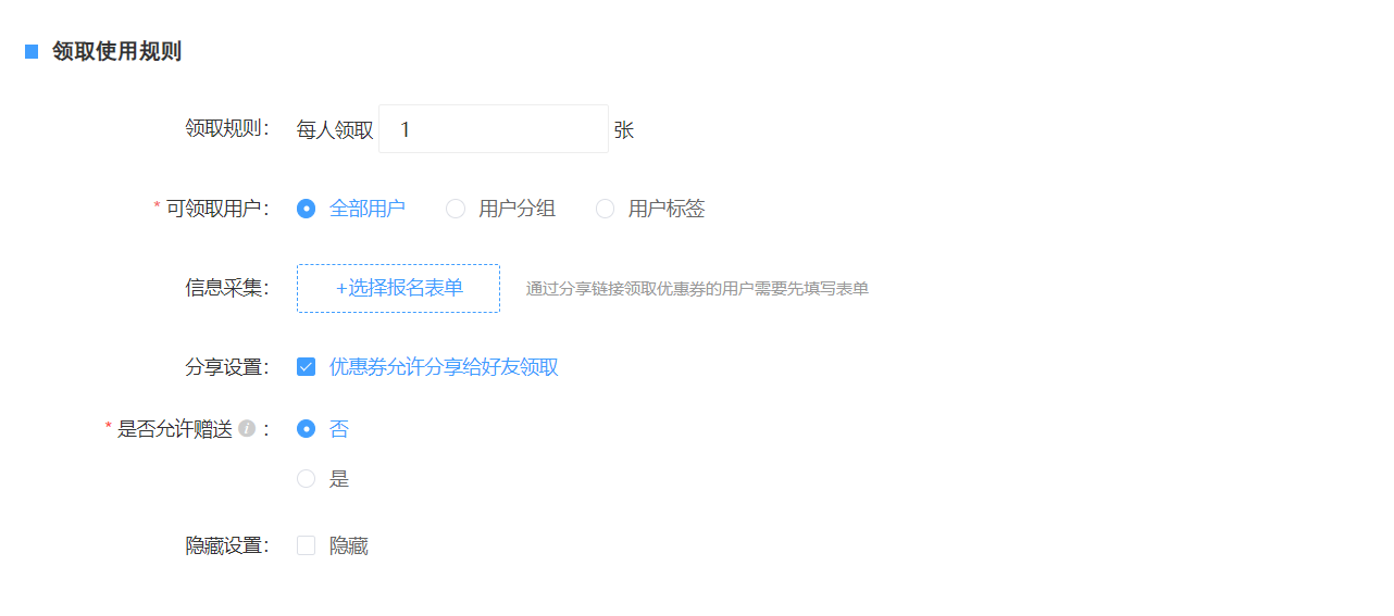 2、设置领取使用规则