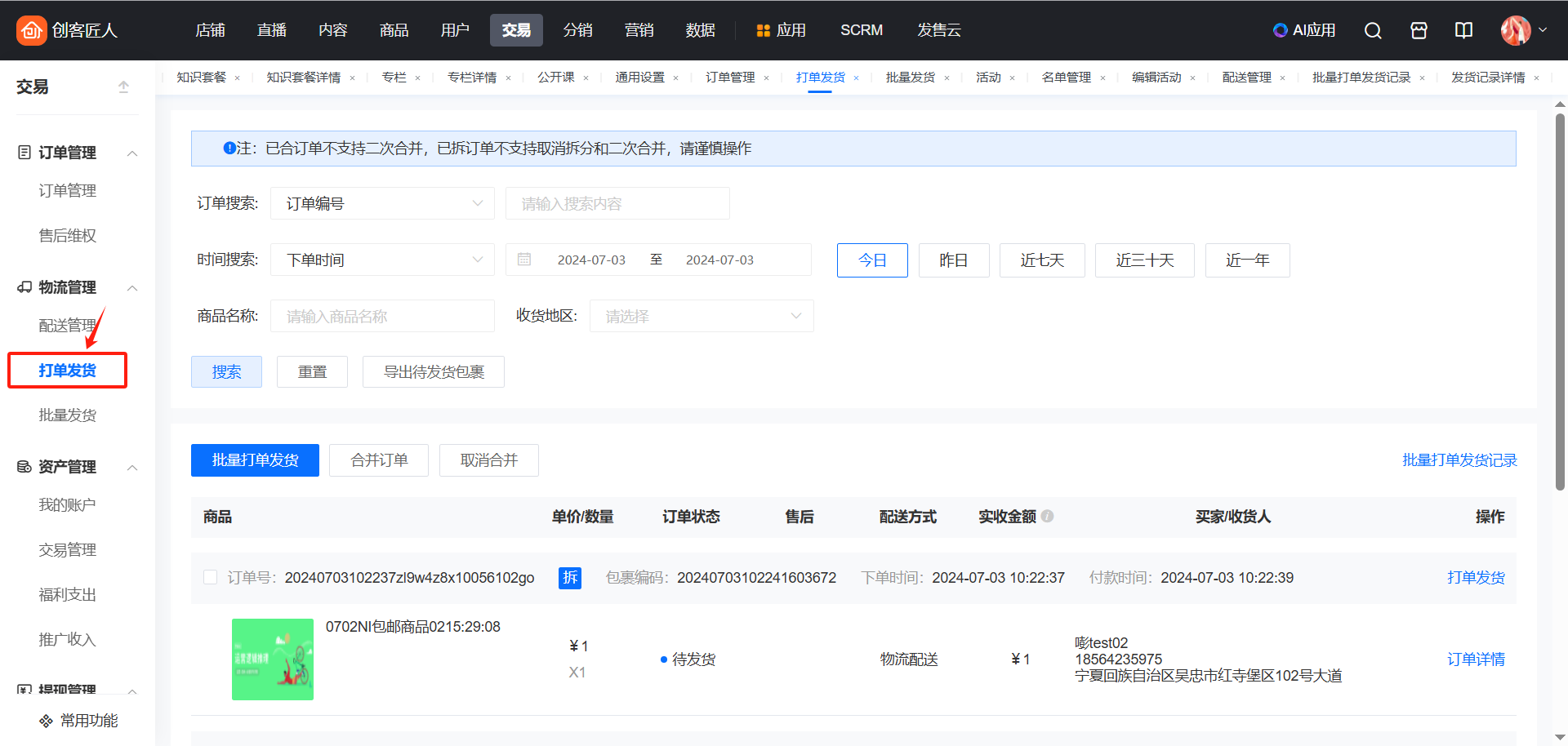 请详细阅读下方操作步骤,带您玩转电子面单,拆单,合单、打单发货、打印面单。