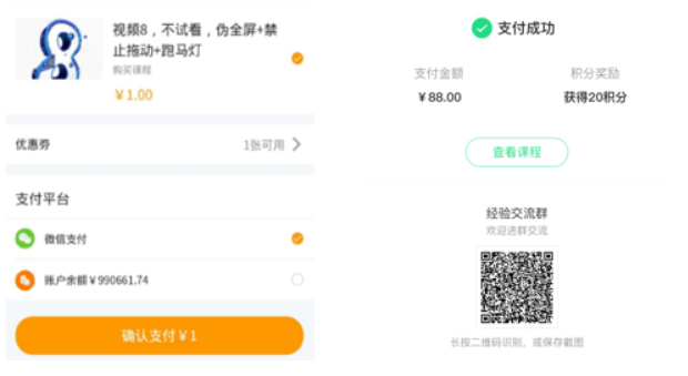 入群引导是学员购买课程后会先跳到支付成功页,可添加指定微信群。