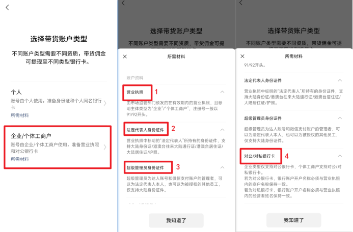 经办人:带货者微信是李四的身份证实名认证的,但是该企业营业执照法人是张三,两者不同。