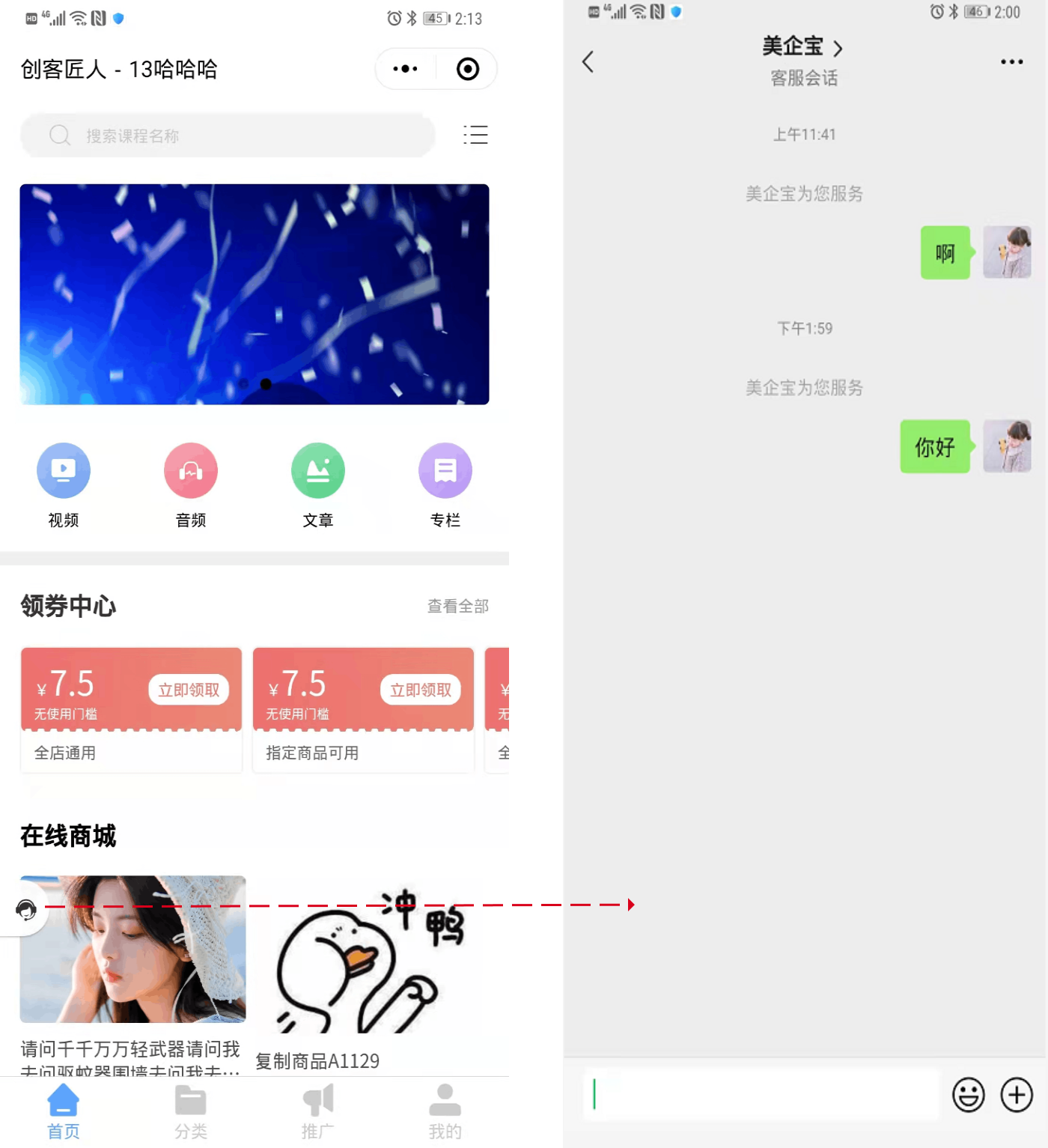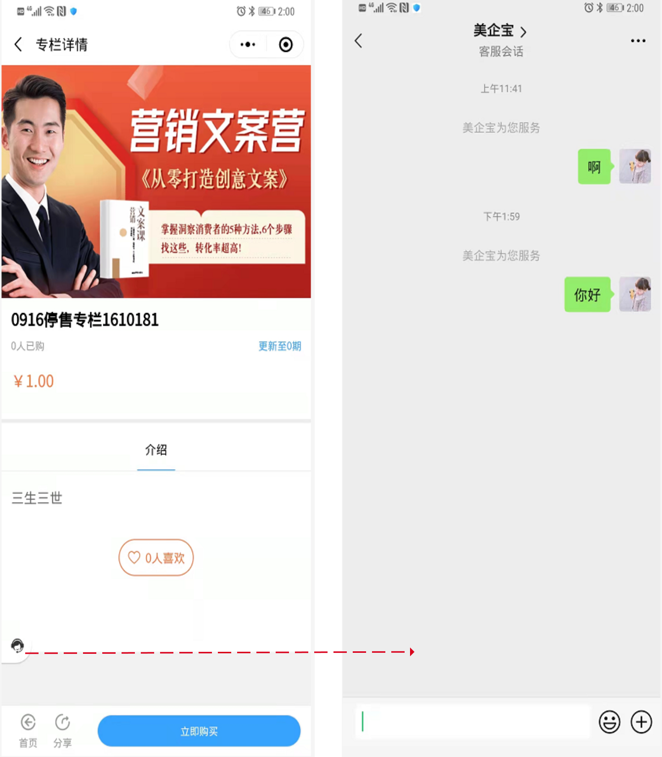 2、课程详情页客服入口