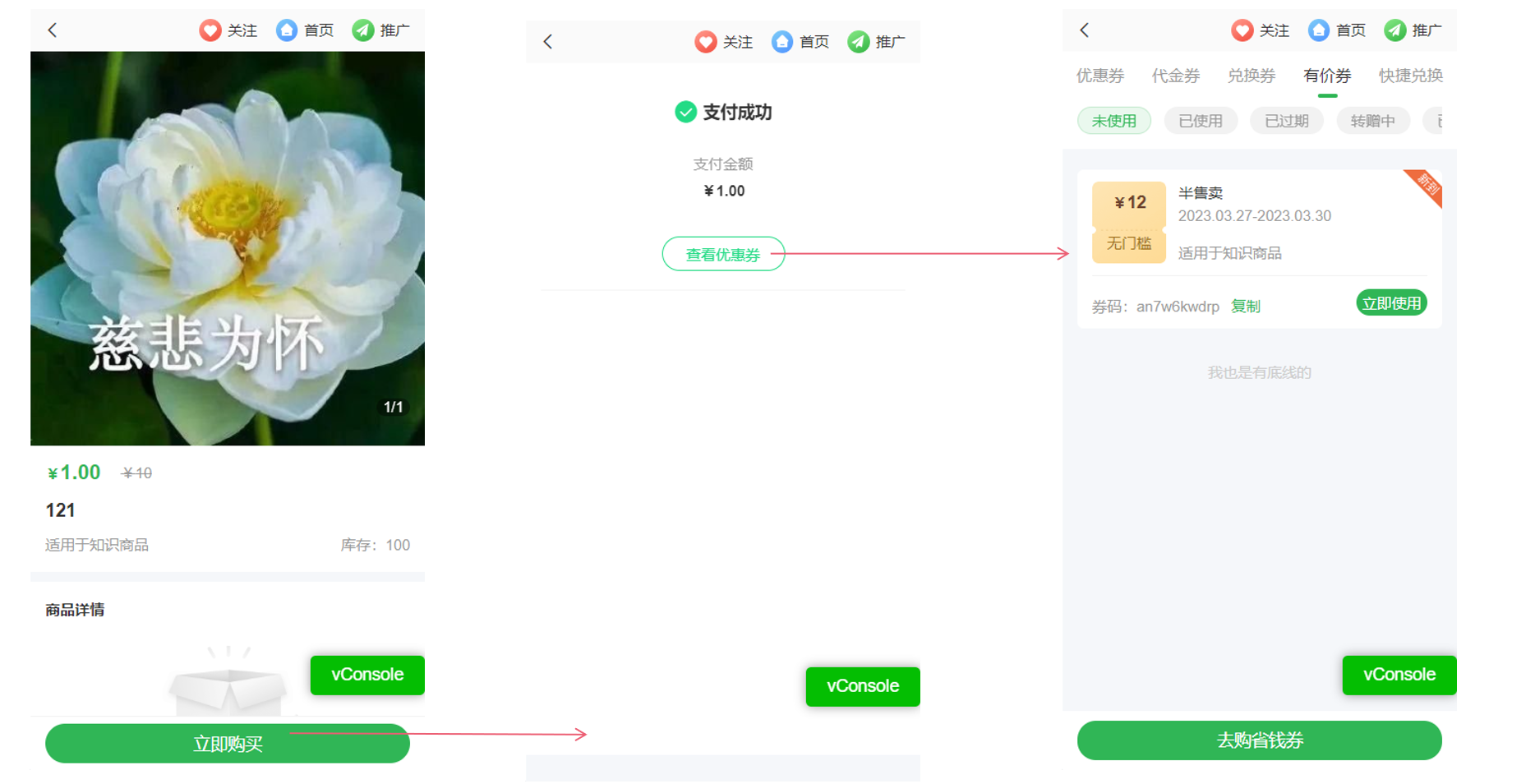 将优惠券、兑换券作为商品进行售卖,可以帮助商家裂变获客,锁定用户消费,提升用户活跃度。