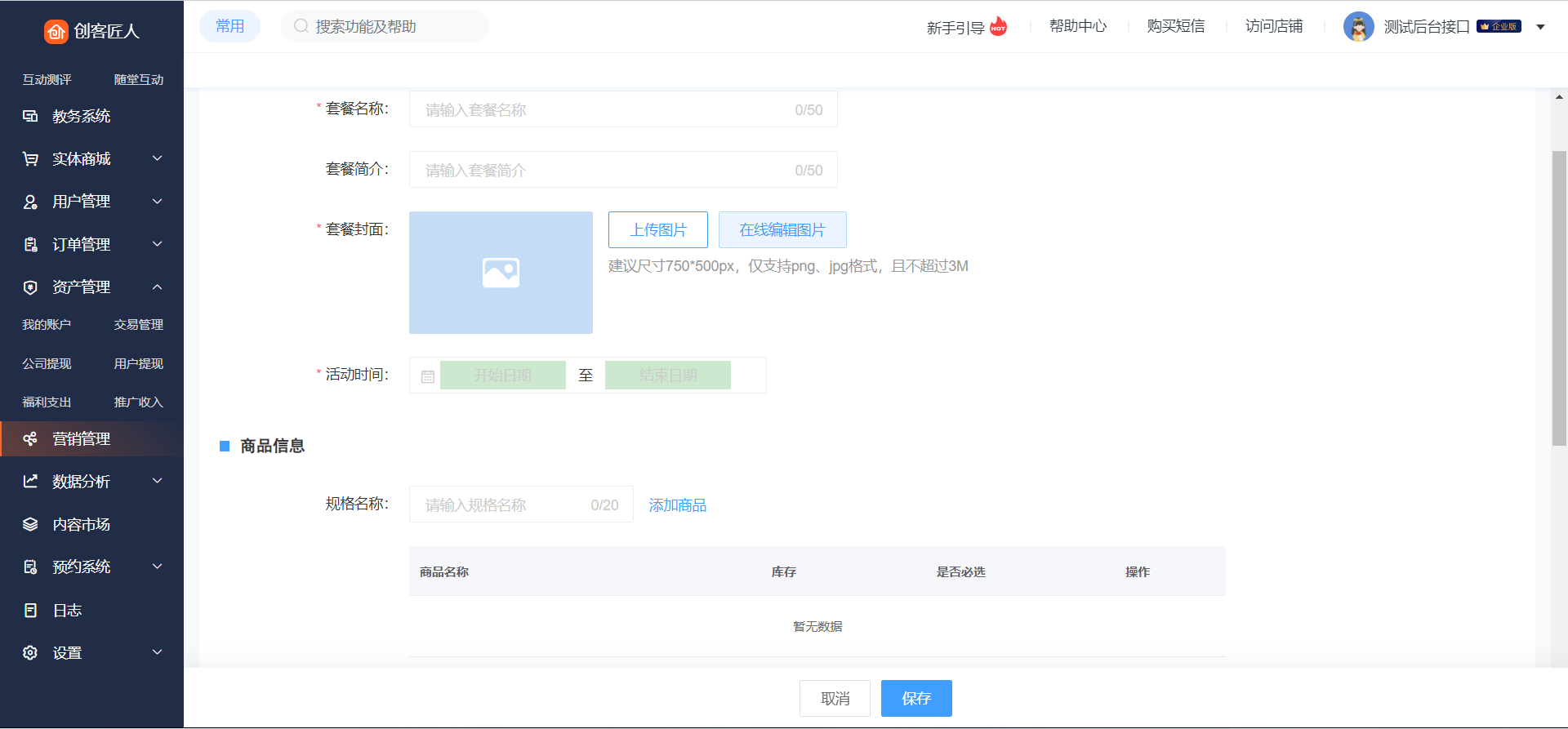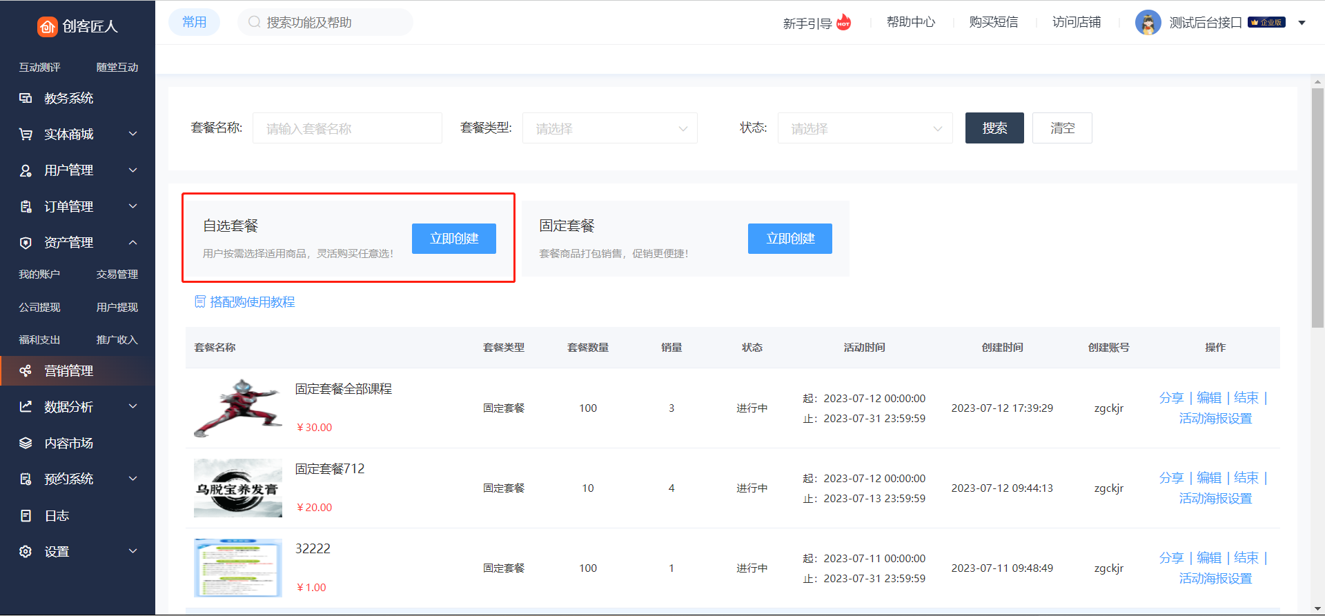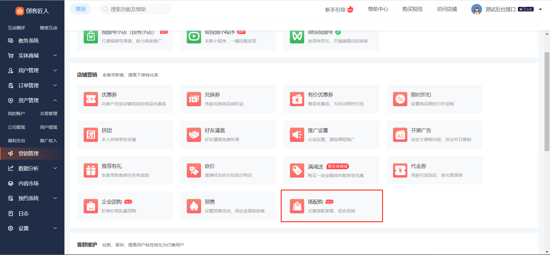 入口:登录店铺管理后台,点击【营销管理】->【搭配购】,进入搭配购列表页