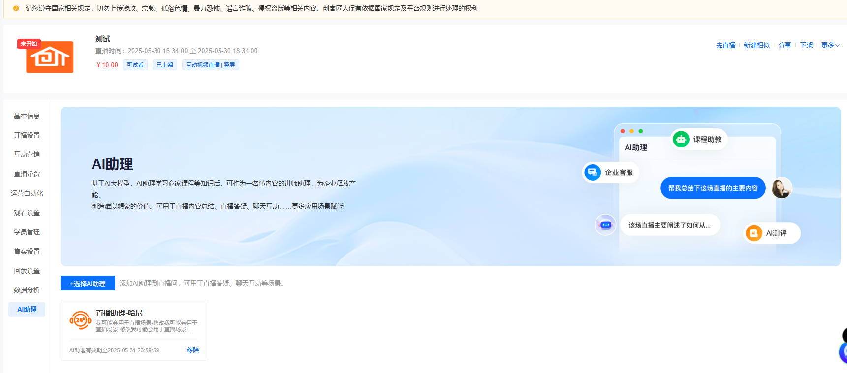 也可关联智能体到直播间或公开课