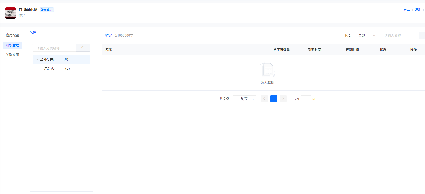 注:开通后赠送1G知识库容量,如果超出无法新增上传知识库,可以用扩容