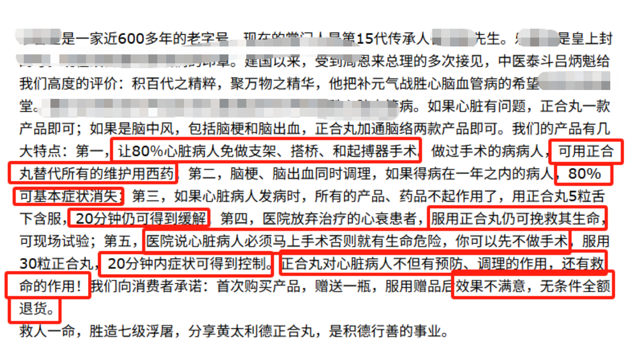 删除替代医疗手段的表述:去掉 “免做手术”“替代西药”“先不做手术”,强调 “建议在正规医疗指导下,作为健康调理的辅助方式”。 删除救命类夸大表述:去掉 “挽救生命”“救命作用”,改为 “有助于日常健康养护”。 |