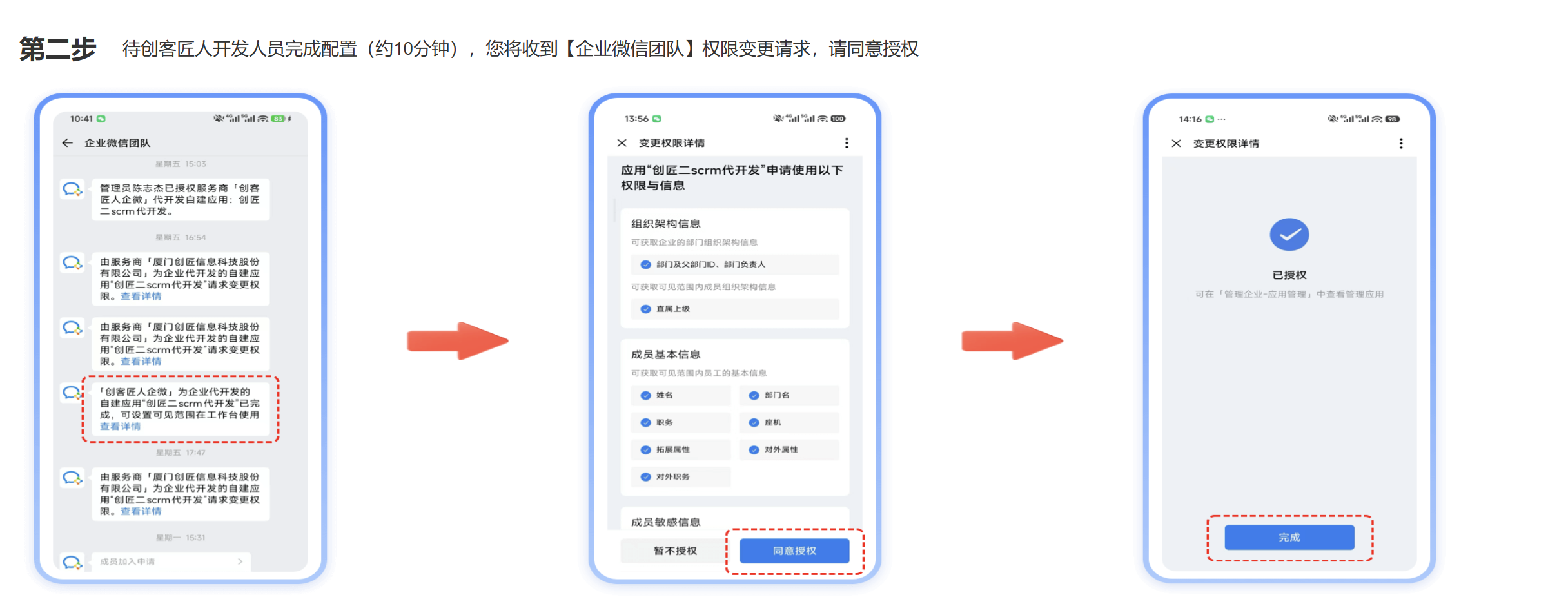 不复杂,整个过程由企业微信官方机制保障: